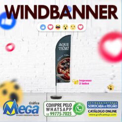 O legal desse produto é que se trata de um Wind Banner Dupla Face, já que a impressão é 4×4 cores (colorido frente e verso). Isso permite que faça a divulgação do PDV de ambos os lados.
