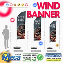 O Wind Banner faz sucesso nas calçadas de pequenos e grandes bairros, pela visibilidade incrível que ele proporciona.